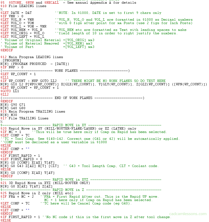 A sample view from a Post Processor Editor inside CAM software