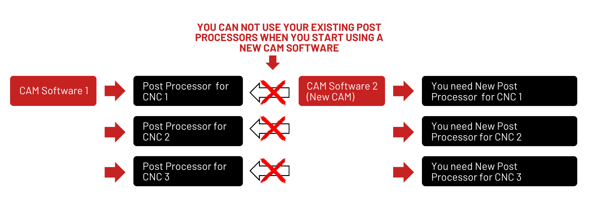 - Even the resellers of CAM software, face challenges when it comes to modifying CNC post processors to meet their customers’ requirements and demands. These resellers struggle to find technical experts who possess the necessary skills to tailor CNC post processors to the specific needs and parameter settings of different CNC machines.