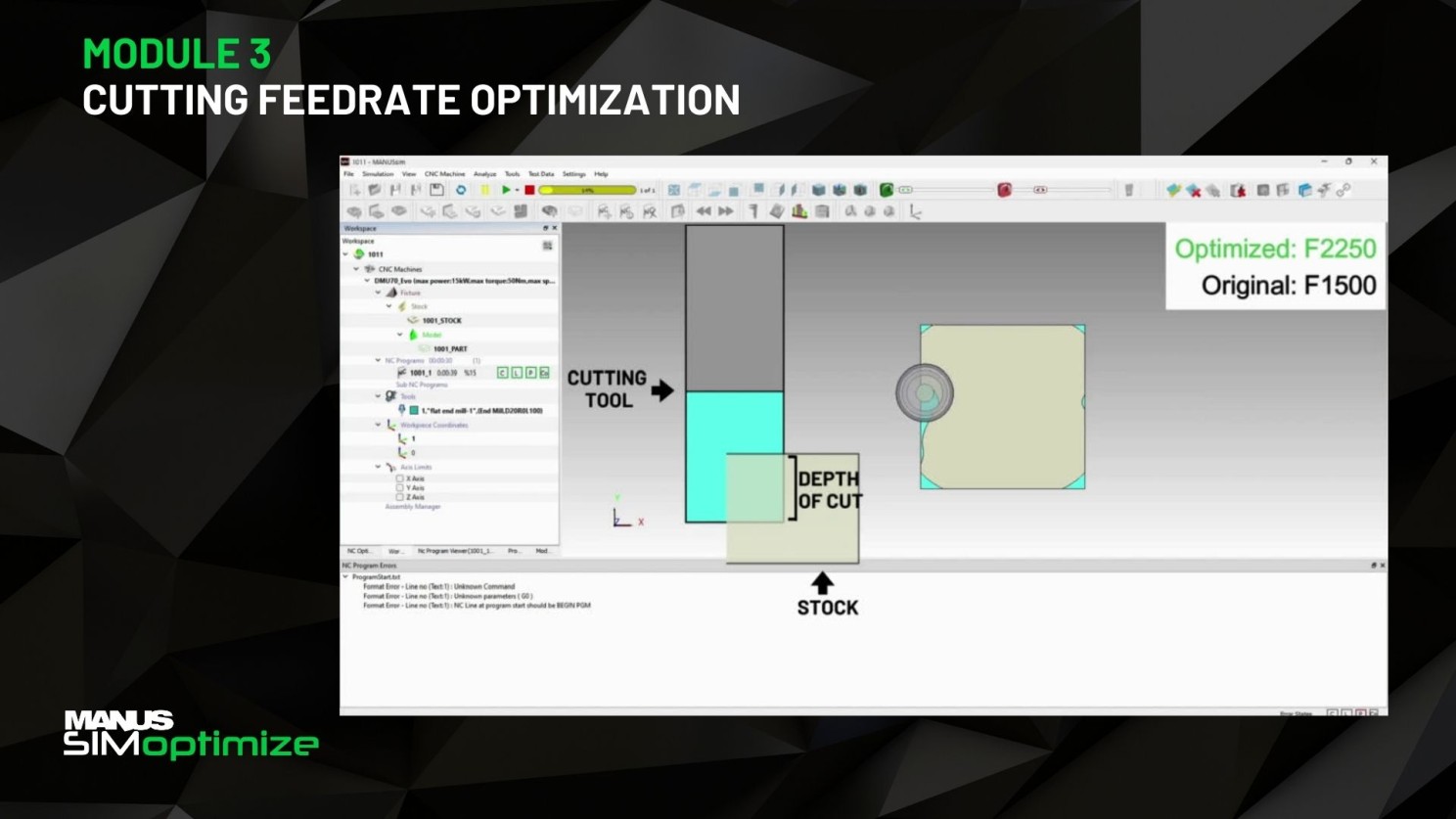 This advanced module takes CNC machining to the next level. MANUSsim Optimize: